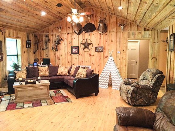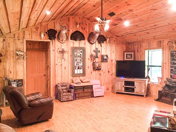 Rustic Cabin with lots of privacy, pond, barn, 4 acres fenced in, with plenty of wildlife, beautiful wood walls and ceilings on lots of the interior. Built in safe room. Additional acreage can also be purchased with the home. All info. subject to verification.