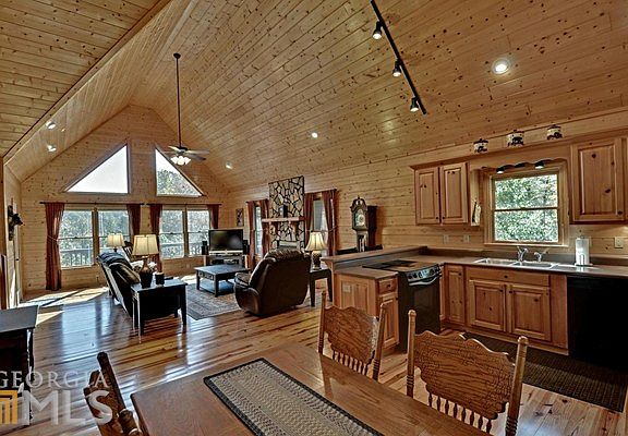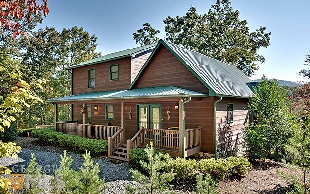 A home to enjoy all four seasons on 2 private acres with year-round mountain views. Located in a gated community 5 minutesoutside of downtown Ellijay. Built in 2005, this freshly stained home features a vaulted main level living/dining/kitchen combo with eastern mountain views. The main level master features a walk-in closet with storage space for full-time living and spacious bath with jetted tub and separate shower. Upstairs the two guest suites have access to a private rooftop deck, perfect for star gazing. Full finished lower level includes a pool table, home office area, bath, and offers additional space to entertain as well as access to a 2 car drive under garage with workshop. Room to build additional garage on right side of home with ample parking.