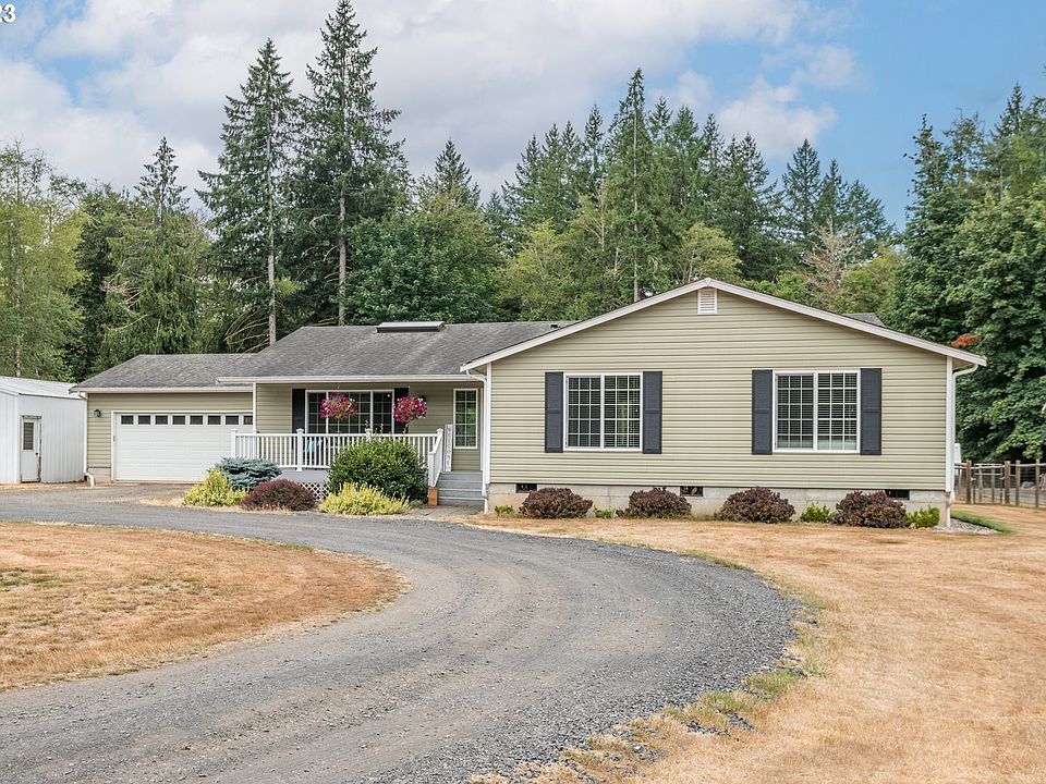 A wonderful opportunity to have a one level home on 4 mostly level acres in the charming community of Castle Rock! Beautifully maintained, this home features vaulted ceilings, spacious kitchen w/ island, 4 bedrooms/2bath. Primary Bedroom features en suite bathroom, walk in closet. Covered patio. Newer flooring through out. Heat Pump. Covered Patio. Attached two car garage. Shop. Sport court, Pickleball, anyone? Country living not too far off the beaten path. Make your appointment today!