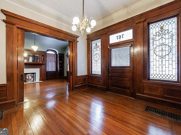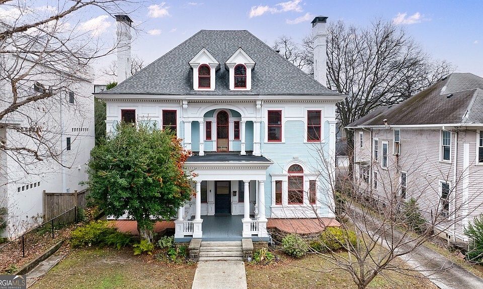 Chance of a Lifetime to experience living in this Stunning Victorian masterpiece, built in 1896 and on the National Registry, is located in the heart of Midtown's Historic District. Home has a Carriage house that has been turned into a TRIPLEX of 3 One Bedrooms and 1 Baths behind this property. Each Rents for $1000 a month. Combining timeless elegance with modern comforts, this architectural treasure offers a unique opportunity to live in one of Atlanta's most iconic neighborhoods. Step inside to discover original hardwood floors, exquisite stained-glass windows, and intricate period details throughout. The home features six fireplaces, multiple clawfoot tubs, 12 foot ceilings, and chandeliers that add to its historic charm. A grand dining room, complete with a one-of-a-kind ceiling mural and original built-ins, seamlessly connects to the chef's kitchen, which boasts stone countertops, a Sub-Zero refrigerator, a wine fridge, and a cozy breakfast nook overlooking the sunroom. The sunroom, with retro checkerboard flooring, leads to a private deck and landscaped backyard perfect for entertaining, complete with a fire pit and basketball hoop. The main level offers flexible living spaces, including a formal study, parlor, and a versatile "Little Parlor" with its own full bathroom, perfect as a guest room or office. Upstairs, the primary suite features a sitting room, two fireplaces, and a luxurious spa-like bathroom with a soaking tub, double vanities, and a walk-in shower. Additional bedrooms are spacious and filled with natural light, while the third level provides a family living area ideal for relaxation or recreation. Located just steps from Piedmont Park, the Atlanta Beltline, and the Atlanta Botanical Garden, this home offers unparalleled access to Midtown's vibrant dining, arts, and outdoor amenities. Whether you're enjoying the nearby Fox Theatre, High Museum of Art, or Midtown's bustling festivals, this neighborhood delivers a dynamic and walkable lifestyle. For added convenience, the property includes a two-car garage, additional parking, and three separate rental units discreetly located in the rear triplex. Security cameras and exterior lighting provide extra peace of mind. If you're seeking the perfect blend of historic charm, modern luxury, and unbeatable location, this home is a must-see!