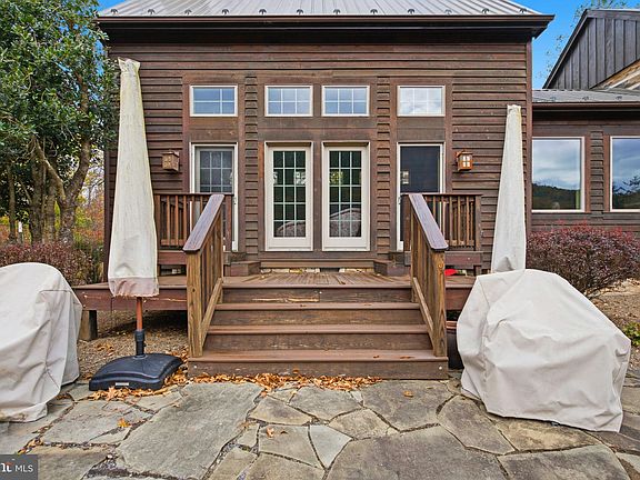 An architectural gem designed by Diane Lohman with input from the sellers. This property features two original log cabins, circa 1800's from Virginia that were dismantled, moved to the current location and put back together with a connecting addition maintaining the authenticity of the time period with a choice of materials to create a wonderful home with all the modern conveniences of today and the feel of yesterday. We'll try to help you visualize the beauty of this property. The home is located on 5.4 natural acres in the Ice Mountain subdivision offering a trail to cross the North Branch of the Potomac river via a swinging bridge. Hike the mountain and enjoy the views of the ridge and algific talus slope that is part of a 149 acre preserve that is designated as a National Natural landmark. It is nicknamed" Nature's Ice Box" or "Nature's Refrigerator" due to its ice vents that release cool air year round. Locally sourced cherry hand hewn wood floors , a magnificent stacked stone fireplace with a custom forged iron fireguard, built in bookcases and two single bed size window seats compliment the cozy great room with a door opening onto the rear patio. The family room, adjacent dining room and kitchen all offer scenic views of the community area "meadow" and Ice Mountain which lies across the river. The kitchen has custom built cabinets with soapstone sink and fire slate counters, a large island with a propane cooktop with tile floors. Situated off the kitchen is a large open pantry with plenty of storage. Enjoy the screened porch directly off the kitchen. There is a large first floor bedroom with connecting bathroom that also serves guests. The upstairs has two large bedrooms each with a private bath, one with access to a wonderful screened porch that also has a steam shower in the bath. The lower level offers another bedroom and private bath, laundry area and utilities room. The outside offers a lovely stone patio with walkways thru the beautifully maintained gardens. The whole house generator and Tesla car charger will convey with the sale of the house along with most furnishings. The furniture deserves its own descriptions , the seller will leave a list of the pieces and history of each.