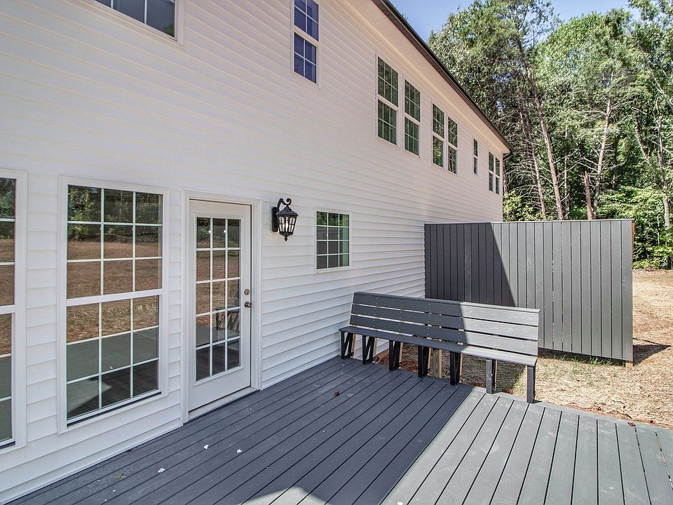 Trex patioStunning kitchenGranite countertopsBeautiful backyardHuge laundry spaceSpacious open family roomLarge white shaker cabinets
