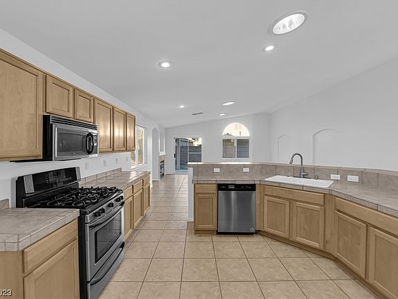 Welcome to 7670 Morning Lake Drive, a charming one-story residence nestled in a secure gated community! This comfortable, yet practical living space offers three bedrooms and two baths across its 1,594 square feet. The open floor plan is accentuated by vaulted ceilings, and the kitchen boasts stylish stainless steel and black appliances, while showcasing a tile countertop. Tile flooring throughout the main living areas enhances the ease of maintenance, and a cozy fireplace adds warmth to the main living area. Here, you'll find your own private pool and a spacious yard, complete with a convenient large gate on the side. This property exudes a timeless appeal, making it the perfect place to call home!