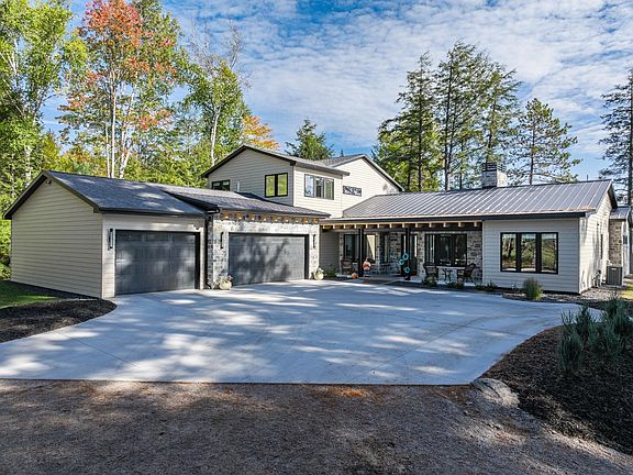 Experience unparalleled luxury on the highly sought-after Three Lakes/Eagle River Chain. This brand-new lakeside estate, recently completed with meticulous attention to detail, offers a breathtaking 5-bedroom, 4.5-bathroom design. Just 45 feet from the level, sandy frontage, a wall of windows floods the open-concept living space with natural light and incredible lake views. Top-of-the-line features include custom European cabinetry, granite countertops, high-end appliances, and radiant in-floor heating throughout the home and oversized 3-car garage. With separate his-and-hers walk-in closets in the primary suite, dual laundry facilities(1 on the main level and 1 up on the 2nd floor), and a dedicated office, workout room, and den, every detail enhances the lifestyle of pure comfort and sophistication. Enjoy the unbeatable Wheeler Island Road location, only two miles from town with direct snowmobile and UTV trail access right from your door!