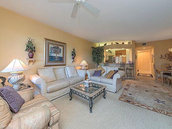 C.12013 Tenants have left, now easy to show-Price Improvement! Golf View, true 3 bedroom residence with private 1.5 Garage, offering spacious split floor plan, en-suite guest room, electric grill on lanai and neutral interior. Enjoy life in the amenity rich community of Pelican Bay including beachfront restaurants, golf & tennis, recreation center, walking & biking paths, nature boardwalk , and more. Pebble Creek is a gated pet friendly community with two private pools, spa, water aerobics, a work out facility, grilling area, and steam room Pebble Creek offers a preferred location within Pelican Bay with the north tram station just outside the entrance of the neighborhood ready to whisk you off to private beaches and restaurants. Private Garage #14 Under Building included. $2,500.00 credit upon accepted offer and closing to Buyer towards updating kitchen appliances.