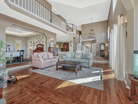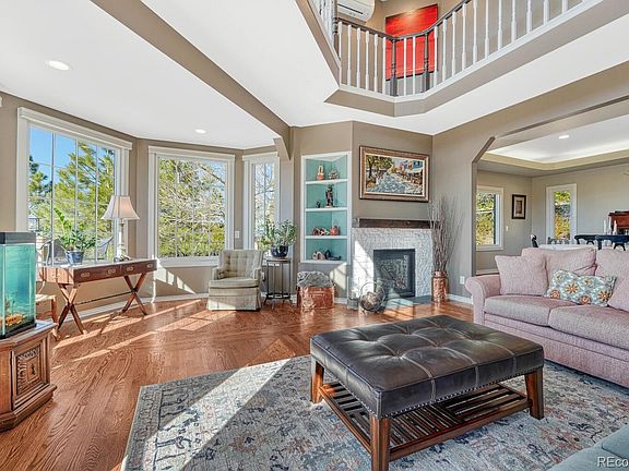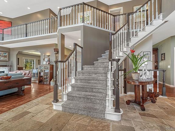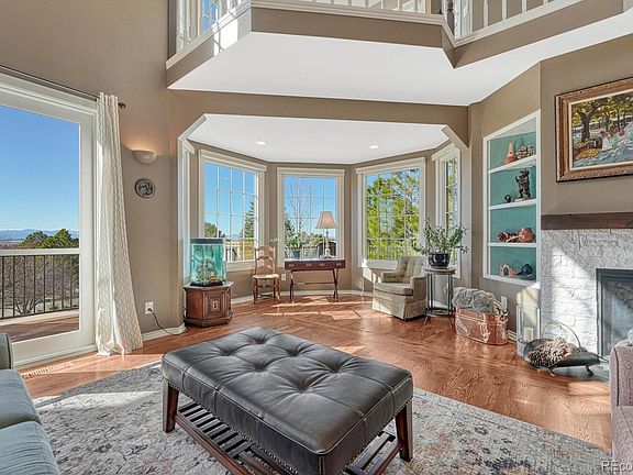 Welcome to this stunning home in the prestigious Chenango neighborhood. Nestled on 1.77 acres, this exceptional property offers breathtaking Front Range views and 5,500 square feet of high-quality finishes. Step inside to find a spacious and light-filled main level, where the living room & dining room showcase expansive sightlines framed by majestic mountain views. The kitchen features granite countertops, center island with breakfast bar, ample cabinetry & attached dining nook. A private study with built-ins and a west-facing triple bay window provides the perfect workspace. A guest bath & laundry room finish out the main level. The primary retreat boasts coved ceilings, a cozy gas fireplace & a private deck with panoramic views of both the mountains. The updated 5-piece bath & cedar-lined walk-in closet add to the luxury. A charming crow’s nest offers a quiet space to unwind while enjoying city views. 3 additional bedrooms, including one with an en-suite bath & two sharing a Jack-and-Jill bath, complete the upper level. Outside, your private backyard oasis awaits. Enjoy 600+ square feet of wraparound Trex decking, a covered patio and 900-square-foot flagstone patio with firepit & relaxing hot tub. The finished walk-out basement is designed for versatility, perfect as a teen suite, entertainment, or family movie lounge. Includes a spacious family room with a wet bar & freestanding gas fireplace, a sliding door opens to a covered patio, a bedroom, a TQ bath with a sauna & storage room. For car enthusiasts & hobbyists, this home offers plenty of garage space, including a 3-car attached garage & 3-car detached garage with an oversized door & 220 service. Chenango residents enjoy access to an 11-acre park w/ a playground, gazebo, horse arena, round pen, tennis/pickleball courts & bridle paths. Conveniently located near E-470, restaurants, shopping and entertainment, this home offers the perfect blend of private, close-in country living with modern conveniences.