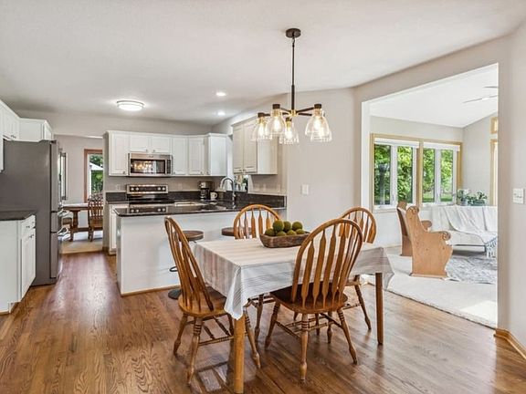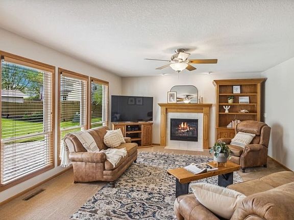 Top location for this fantastic 4 bedroom 2 story home! Walking distance to Brookview Elementary and Jordan Creek Town Center. Easy access to parks, recreation facilities, trail system, and interstate. Plenty of space with over 3000 square feet finished. Bright and cheerful home with southern exposure. Kitchen with granite counters, stainless steel appliances (updated in 2017), breakfast bar, and eat-in area. The kitchen is open to the family room with a gas fireplace and the 4-season room (added 2012). Access the brick patio and backyard from the 4-season room. Newly refinished hardwood floors in the entry, hall, kitchen, eat-in area, half bath, and mudroom. Flex rooms - living and dining rooms can be used traditionally or as office space, playroom, etc. Freshly painted main level, upstairs hallway, primary bath. Roof was replaced in 2017, furnace and A/C 2012, Pella replacement windows in much of the home 2014. Primary bedroom features a full bath with jacuzzi-style tub, double vanities, separate shower, walk-in closet. Additional 3 bedrooms nice size. Full bath off hallway. 2nd-floor laundry room with utility sink and storage cabinets. Basement is finished with rec room (egress window), heated tile flooring, and storage room with built-in shelving. 3 car garage. Waukee schools.