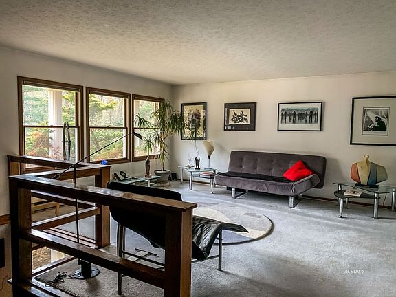 Located just minutes from uptown Athens yet situated on a beautiful 6+ acre property, this stylish split-level home offers convenience, privacy and comfort all wrapped up into one delightfully affordable package. Step inside to a foyer that features slate tile flooring and an extra-wide, open staircase that ascends to a large, light-filled living room. Main level includes tile-floor kitchen with stainless steel appliances, a big dining area, plus 3 full bedrooms, one of which includes an en suite bathroom. Lower level includes large family room with wood-burning stove, half bath and laundry room, plus two offices, both with built-in bookshelves, desks and work areas-ideal for the hobbyist, collector or work-from-homer. Additional perks include gobs of closet space throughout, upgraded lighting fixtures, 2-car garage, and two outbuildings for tool and garden storage. As for the property itself? It's got woods and fields and creek that runs through it. And the pièce de résistance? Your own private waterfall, of course! Come hike the property then warm cockles of your heart by the woodstove as you consider how lucky you are to have found your next home with so little effort.