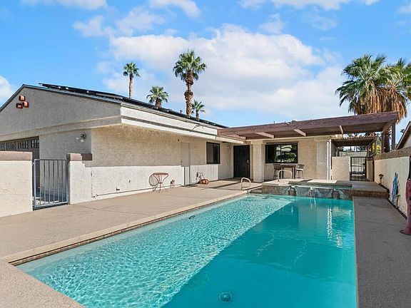 Discover this charming 3-bedroom, 2-bath home in the heart of Palm Desert Country Club! Beautiful as is--or the perfect canvas to add your personal touch--this inviting property offers comfortable desert living with Solar Panels and great indoor/outdoor flow. The front-facing pool provides wonderful privacy, while the backyard is designed for relaxation and entertaining with an extended covered patio, built-in outdoor fireplace, and excellent separation from neighboring homes. Inside, the home features a practical layout with three well-sized bedrooms and two full bathrooms, offering space for family, guests, or a home office. Whether you're seeking a primary residence, seasonal escape, or investment opportunity, this property offers flexibility and potential. Located within the vibrant Palm Desert Country Club community, residents enjoy a wealth of amenities including two sparkling pools, a spa, clubhouse (available for private events), a large park, dog park, and basketball and volleyball courts. Golf lovers will appreciate access to the public 18-hole course, while food lovers can savor the popular on-site restaurant, open during the season for breakfast, lunch, and dinner--often with live music on the weekends. The location is unbeatable: just minutes to the Indian Wells Tennis Garden, home of the BNP Paribas Open, and a short drive to El Paseo, renowned for upscale shopping, galleries, and dining. Combining resort-style amenities with everyday comfort and convenience, this delightful home offers an ideal opportunity to enjoy the best of desert living.