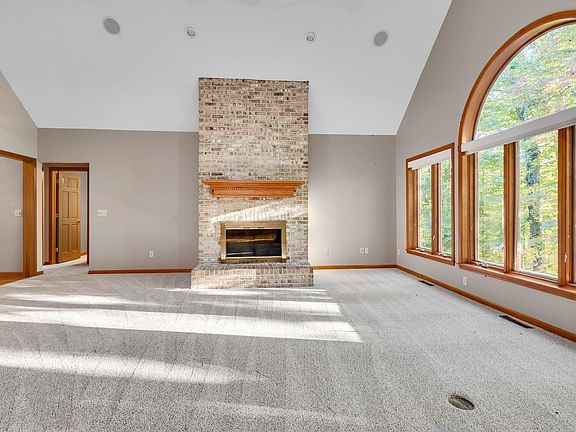 Surrounded by almost 6 acres of scenic nature views you will find this hidden away estate. Upon entering you will be welcomed by a spacious open foyer and three amazing levels of living space. Custom windows throughout fill the home with natural light, creating a bright and airy living space. The main floor has it all - a large primary suite, convenient laundry, a fireplace warmed living room and priceless views from your favorite chair. Upper level offers two additional bedrooms with large walk-in closets and bonus room above the garage. Heading into the basement it provides additional living area with a wood burning stove, kitchenette and full bath along with the same stunning views from indoors or from your walk out patio area. Storage is not issue with the walk-out double door storage/workshop area, plus a large utility room. Relax on the back deck in the screened in octagonal sitting area overlooking the pond which is home to many different wildlife species. A three-car garage that fits all your vehicles and more. This home has been refreshed and carefully prepared for a seamless move in with new carpet just installed this week throughout the main and upper floors. Check out the newer updates which include the roof, furnace, full house generator, driveway, and water treatment system. This property has so much more to offer than just a home; it's a whole new way of living. You need to see for yourself!