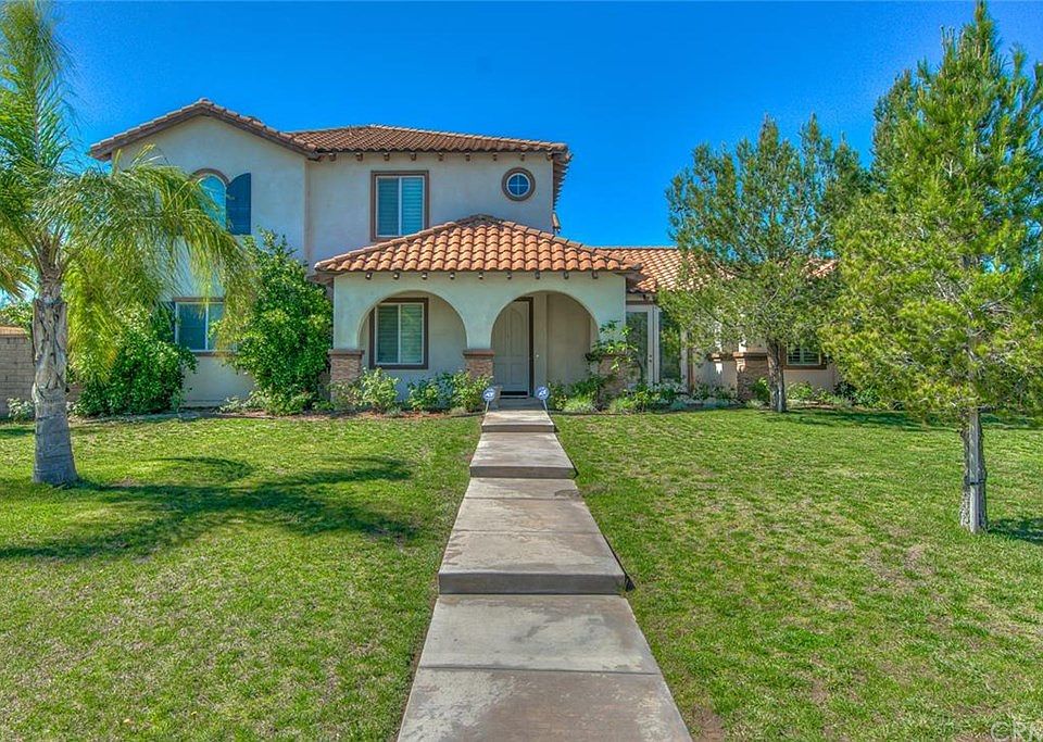 Beautiful 4 bedroom, 3 bathroom home with 3,090 ft² of living space on a 12,548 ft² lot built in 2005 located in the highly sought after Etiwanda School District! Very large master bedroom has fireplace, walk in closet, marble counter top and back splash in master bathroom. In law suite located on the first floor, includes a full bathroom. Home has plantation shutters throughout, crown molding, formal dining room with a butlers pantry. Large open kitchen with granite counter tops. Two fireplaces with mantel in family room. Private & landscaped back yard with stamped concrete, palm trees & a great mountain view. Walking distance to Victoria Gardens. Hurry, you don't want to miss out on this amazing opportunity!