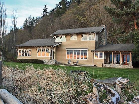 100+/- ft of low-bank waterfront (includes tidelands) w/spectacular views of Olympic Mountains & shipping lanes. Sale also includes 1/3 undivided ownership of 10+/-acre greenbelt immediately behind home. Property has its own well & a 3-bedroom septic system. Main house includes two bedrooms & numerous other rooms w/view; packed w/high-quality amenities. Apartment above garage has its own bedroom, 0.75 bath & kitchenette. Ample parking for many guests. Imagine.