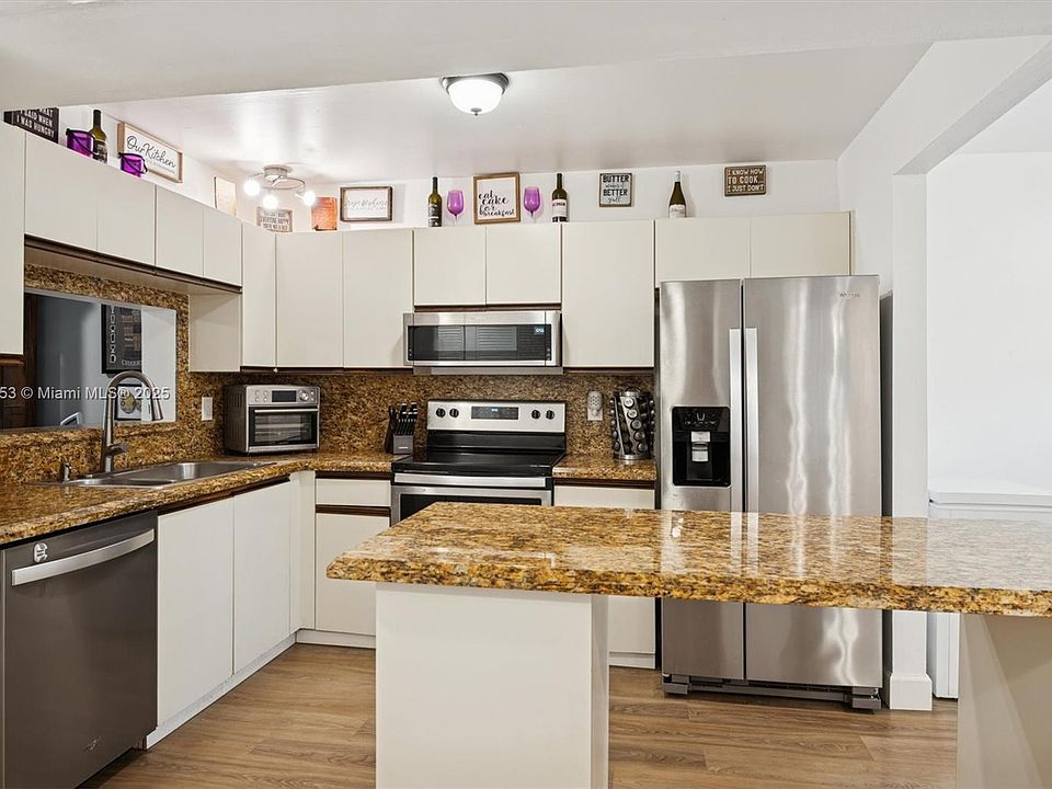 Welcome to this 2/2 condo located within a secure gated community. This stylish residence boasts vinyl wood flooring throughout the shared spaces, adding a touch of warmth & sophistication. The open floor plan connects the living room, dining area & kitchen, making it perfect for hosting guests or enjoying quiet evenings at home. Beautifully renovated 2nd bathroom. Master bedroom has 2 walk in closets. You'll appreciate the convenience of an in-unit laundry & plenty of storage options. Step out onto your private screened balcony w/ pool view, for savoring your morning coffee or unwinding in the evening With community features like a swimming pool, hot tub, BBQ area and clubhouse, this condo blends comfort & lifestyle. Seize the opportunity to make this exceptional residence your own!
