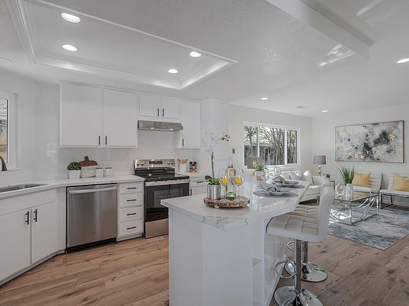 Beautifully updated single-level gemLovely backyardElectric range with hoodLuxurious quartz countertopsStainless-steel appliancesStylish backsplash