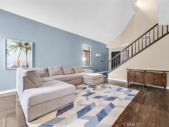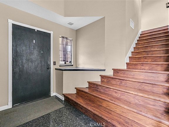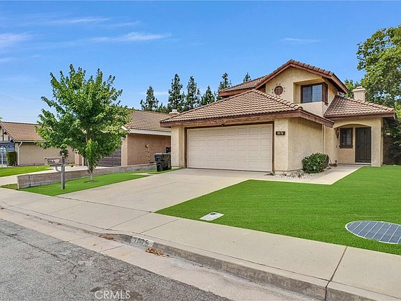 Amazing price improvement! Don't miss out on a prime opportunity! Welcome home to this wonderful 3 bedroom 2.25 bath home in the beautiful community of Terra Vista. Pride of ownership is evident on this well-maintained cul-de-sac. The front yard features lush green, easy to maintain, drought friendly artificial turf. As you enter through the front door, you'll be impressed by the grand entry, sweeping staircase, and the living room that enjoys a high ceiling, cozy brick fireplace, dining area, and sliding glass doors that lead to the sunny enclosed patio. The delightful eat-in kitchen features granite counters with plenty of prep space, ample cabinet space, and a pantry. The large picture window provides a convenient pass-through for outdoor entertaining. The downstairs also features a spacious bedroom, a full bathroom with a large storage closet, a convenient indoor laundry, and a deep coat closet for more storage possibilities. The upstairs features 2 more spacious bedrooms, especially the primary bedroom suite that enjoys a high ceiling, vanity with linen storage, walk-in closet, and a French door that leads to the large balcony with stunning mountain and neighborhood views. The secondary bedroom has corner windows offering more gorgeous views. The large full bath features tile floors and a beautiful dark wood vanity. The generously sized backyard is wonderfully private with no rear neighbor and features a cement and brick patio and block walls. The direct access 2 car garage has a workbench and tons of storage cabinets. Conveniently located near schools, parks, and the Terra Vista Town Center with lots of shops, restaurants, and a movie theater. This home is a must see!