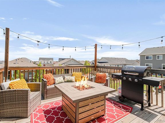 Welcome to this stunning 2019 Richmond-built home located in Serenity Ridge and bonus, Cherry Creek schools! The main level features an open-concept layout with a spacious dining area, a large kitchen with white cabinetry, quartz countertops, a center island, and soft neutral tones that flow seamlessly into the light-filled family room. A convenient powder bath rounds out the main level.