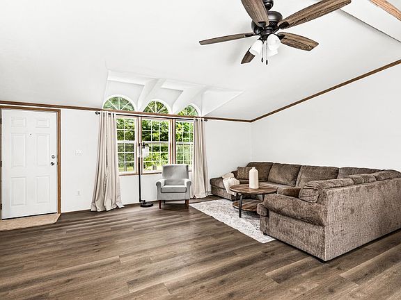 Dream Setting Awaits! Tucked away on a peaceful dead-end road, this 1998 one-level home offers the perfect blend of comfort and country living. Home updates you’ll appreciate include a new septic system (2021), roof on the home (2015), and central air conditioning in the last few years. A water softener system and reverse osmosis filter in the kitchen add everyday convenience. Inside, updated laminate floors flow through the open layout. The open concept dining and living space flow nicely into the bright kitchen. The spacious primary suite features a huge closet accessible with two doors and a large full bath with a soaker tub and shower, while two additional bedrooms and another full bath sit on the opposite end of the home. All of the bedrooms have large closets. The garage is a standout — three stalls (two with openers), fully insulated walls, and stairs to attic storage spanning all three bays. Attached are two barn stalls ready for horses, goats, or your hobby farm dreams. The land is a treasure: a serene yard bordered by a trout stream, perfect for nature lovers. Step out from the dining room onto a brand-new back deck and soak in the quiet surroundings. If you’ve been searching for a move-in-ready home with abundant garage space, room for animals, and a tranquil rural setting, this property is ready to welcome you home.