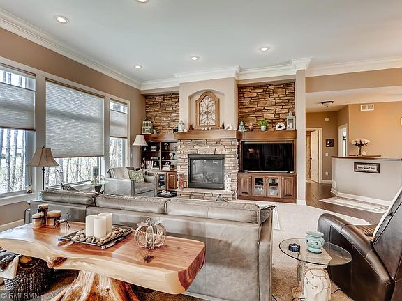 Beautiful custom built walk-out 4 bedroom, 3 bath Rambler in Miller's Woods! Spacious, open floor plan offers gorgeous hard wood floors, vaulted and coved ceilings, stone hearth gas fireplaces in living room and family room, custom built-ins thru out. Gourmet kitchen with large center island, granite, stainless appliances, large family room in lower level with wet bar. LL wired for surround sound and TV above the fireplace. Large lower level patio overlooks lush back yard. 4 car garage has plenty of room for the toys of your choice or workshop area. Invisible fencing for your furr-babies! Garage is prepped for heat! Gas line, vent, thermostat wires and 110 V outlet! Don't forget the community pool! A relaxing get away on a hot summer day!
