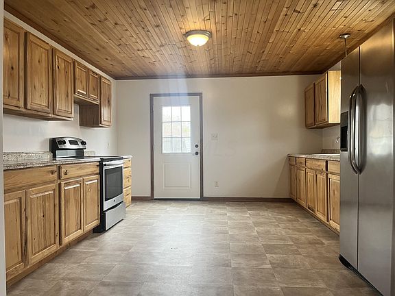 This affordable 3 bedroom home has been freshly painted throughout and is ready for you to make it your own. As you walk in the front door you will. immediately notice the vaulted wood ceiling and how it gives the home a bright, spacious feel. The wood ceiling continues into the kitchen that offers an abundance of cabinet space and you won't mind washing the dishes when you see the beautiful scenery outside the kitchen window. Located on almost one full acre, there is plenty of space for your outdoor activities and you are sure to love the fantastic views from the covered front porch and the side deck.