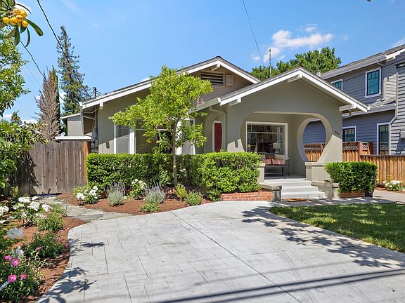 This super charming home is loaded with 1920's vintage features and ambiance. Stylish [covered] front sitting porch, original windows including two classic picture windows, gleaming hardwood floors, sunny front living room, spacious formal dining room, eat-in kitchen loaded with potential, rear sunroom that doubles as a laundry room, plus basement with easy outside access, new paint inside and out. Many era touches abound in the home: Glass door knobs, original hall phone niche, tall baseboards, and wide trim work. Move right in, or add your special touches and flair! In the 1960s? Or 1970s?, a previous owner built the two-story duplex [at the back of the property] with identical units with 2 bedrooms, 1 bathroom, an eat-in kitchen, and inside laundry that currently brings in over $5,000 a month in rent. This is a perfect property for the first-time homeowner who wants income to help with the mortgage, an investor wanting a unit in a desirable area, or someone wanting to do as nearby neighbors have done: build a dream home. Nicely located in a super convenient location, within strolling distance to the many attractions of Downtown Mountain View, local parks, schools, the Stevens Creek Trail, and a popular local gym. A must-see for the savvy buyer! Versatile uses abound!