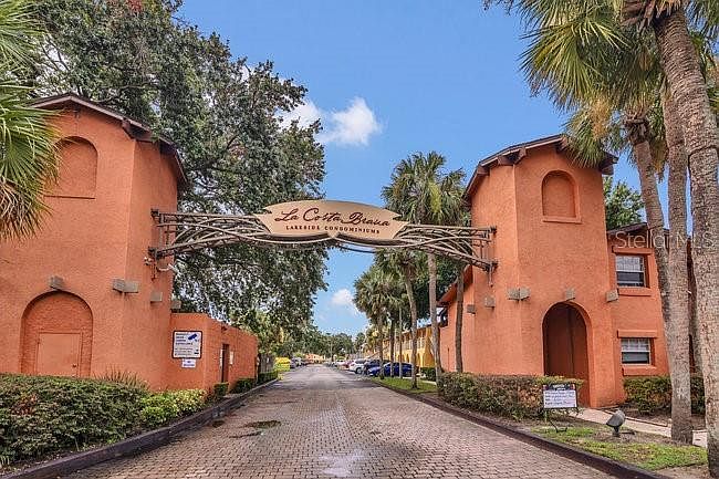 RENOVATED CONDO AND WITH AN ACCEPTED OFFER SELLER WILL INCLUDED SEVERAL MONTHS OF PAID HOA DUES. Welcome to La Costa Brave one of the few condo communities that are not only lake front but just minutes to downtown Orlando. This freshly remodeled 2/1/1 condo is ready for a new owner. Updates include NEW WINDOWS, NEW VINYL FLOORING, NEW PAINT, BASEBOARDS, NEW BATHROOM VANITIES, NEW KITCHEN CABINETS and NEW QUARTZ COUNTERTOPS. Upon entering this second-floor unit you are greeted by an open floorplan. Sliders just off the Livingroom lead to you private covered patio. From here you can take in the views of lush landscaping, the first of 2 community pools and tranquil views of Lake Pineloch. Just off the dining room area you will find a newly remodeled kitchen.....white cabinetry.....quartz counters and stainless-steel appliances create the perfect space for anyone who loves to cook. Off the living room you will find the half bath with NEW cabinetry and a private closet area which hold the washer and dryer. To the left and right of the half bath you will find two matching bedrooms with tons of closet space, vinyl floors and access to a shared bathroom. The full bath includes an updated shower area and a separate double sink vanity space. A few extras you will find in the well-appointed condo are: exposed beams on the ceiling, spacious bedrooms, large living room space and exterior storage on your private patio. La Costa Brava provides walking paths, a gym, recreational (Cantina) space which can be rented out for private parties, a separate mail space, docks, a community boat slip, 2 pools area and just minutes to shopping (SODO shopping center), schools, hospital, entertainment and so much more.