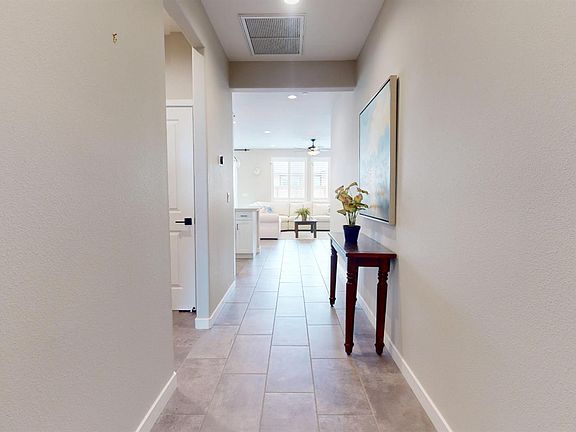 Better than new! Immaculate 1-Story Residence in Tesoro Viejo offers resort-style living with nearly 400 acres of open space, 15 miles of trails, and an abundance of resort-style amenities. Step into this stunning ugraded McCaffrey home, where modern elegance meets everyday comfort. Open floor plan residence features upgraded tile flooring that flows seamlessly throughout the main areas and is illuminated by stylish pendant lighting and a stunning chandelier. With ceiling fans in every room and a soft neutral paint palette, this home provides a serene environment for you to unwind. Benefit from OWNED 3.81 Kw SOLAR SYSTEM and an EV charger, making eco-friendly living practical and affordable. Seller will include a high-end Samsung stainless refrigerator, Samsung top-load fingerprint-resistant washer, and matching dryer, saving you thousands on essential appliances. The kitchen is a chef's dream, outfitted with sophisticated finishes that include white shaker cabinetry, gleaming white quartz countertops, and modern stainless steel appliances. Elegant plantation shutters that offer both style and privacy. Just minutes north of Fresno, where residents enjoy a beautiful scenic setting coupled with modern conveniences. Enjoy the great outdoors with picturesque trails and well-maintained parks, perfect for families and nature lovers alike. Schedule your visit today and discover the perfect blend of comfort, style, and community living at Tesoro Viejo.