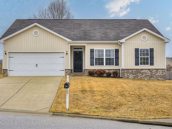 Charming ranch home in Grovetown, GA - newly painted and new HVAC! This home offers an open concept layout seamlessly tying together the living room, dining area and kitchen. Kitchen features stainless steel appliances, bar top seating, ample counter space and a large combined pantry and laundry room. Living room and owner's suite are lined with beautiful wood flooring. The split bedroom layout offers additional privacy to the owner's suite that is complete with an ensuite with garden tub, separate shower and dual sink vanity. 2 bedrooms and a full bath are located across the living room. In addition to the bedrooms you have an office with French doors that could also be used as a playroom or additional living space. Situated on a large corner lot there is plenty of room to create your ideal outdoor living space. Schedule a showing today and imagine the possibilities of making this house your new home!