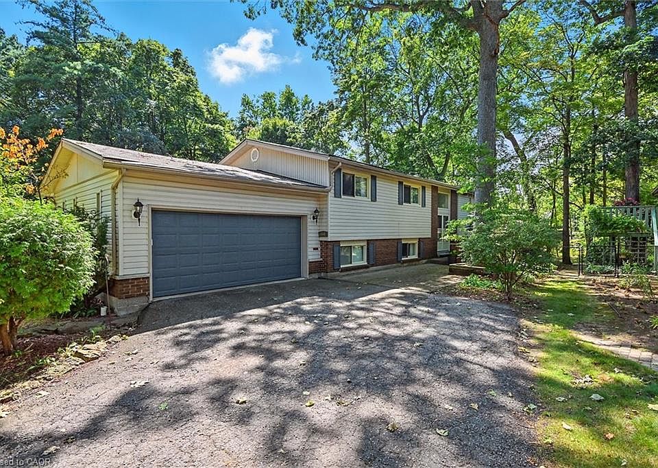 Enjoy a unique private cottage setting with all the amenities of city life nearby. Nestled in mature trees with an extra deep lot, this Aldershot home offers high ceilings on 2 floors and a bright, efficient design throughout. The double door entrance leads to a large foyer and main floor with exposed brick, vaulted beamed ceilings, oversized windows and a skylight. The open concept Living and Dining rooms feature gleaming hardwood floors and patio doors leading to a wrap-around multi-level deck. The Kitchen features storage and counter space galore with peninsula and separate breakfast bar area with more patio doors to the deck. The main floor Primary Bedroom features a 3-piece ensuite and oversized closet. Two additional Bedrooms and an updated 4-piece Bathroom complete this level. The Lower level features a spectacular Recreation room with a second fireplace and walkout to the back patio. A renovated 3-piece Bath, Office and Bedroom make it the perfect opportunity for additional family or guests. A separate Laundry room and Utility room with garage access offer even more storage space. With the Bruce Trail in close proximity and Lake Ontario down the road, this fabulous family home is a bird and nature lover’s dream with walkable access to schools, parks, trails, golf, waterfront and shopping.