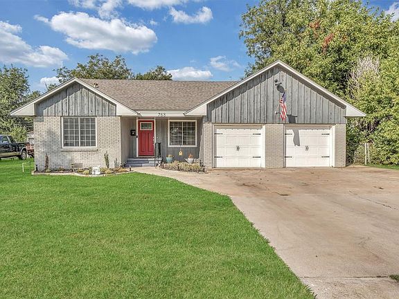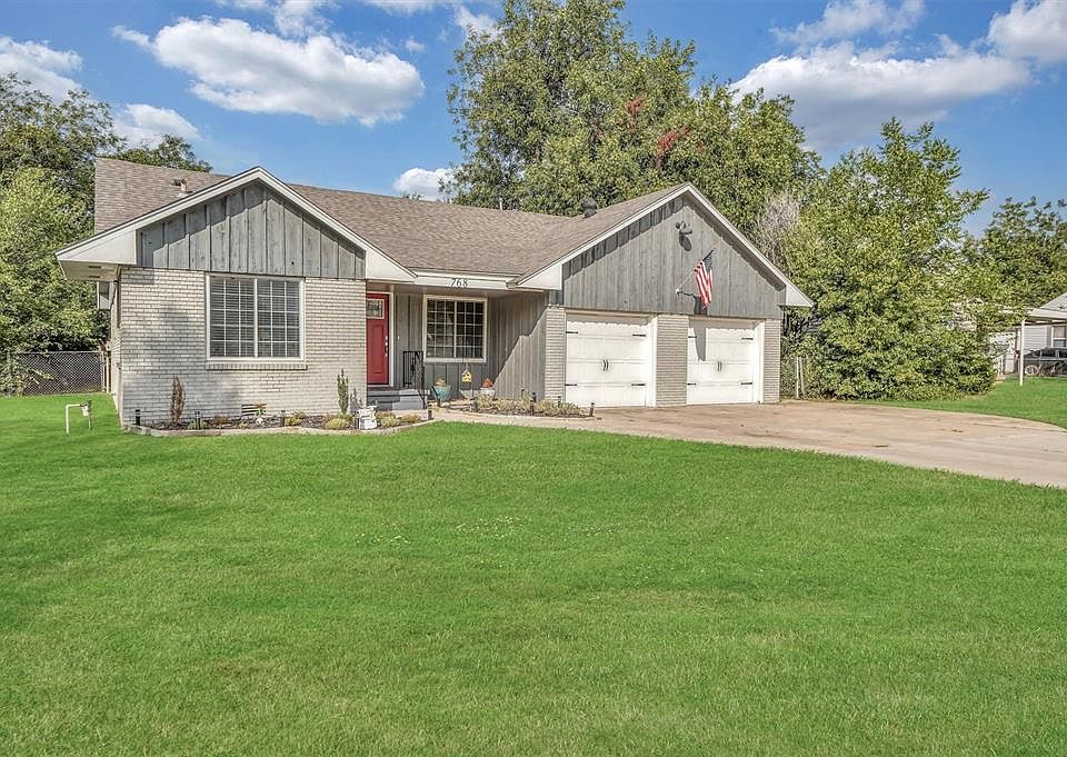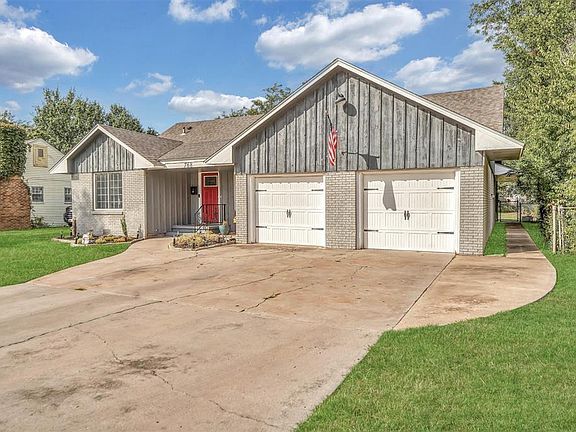 This charming property features a long driveway leading to a generous two-car garage, offering plenty of parking space. A welcoming sidewalk lined with a flower bed guides you to the covered front porch.
