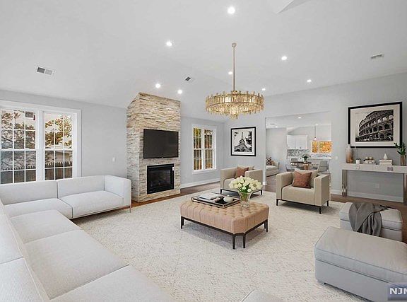 This newly renovated approximate 3668 sq ft sprawling ranch home is set back perfectly upon a beautiful large property roughly 110 x 350. Offering 4 large bedrooms, 3.5 baths, with an abundance of open layout living space, high ceilings & beautiful hardwood floors. Includes a gorgeous gourmet kitchen, family room with fireplace, living room, dining room, bonus room, & an enormous finished basement w/full bath. The master bedroom suite located in the back of the home separated on its on wing includes a large stunning master bath with a free standing tub, a large walk-in closet & sliders to deck. In the front of home there are 3 more large bedrooms, full bath & laundry area. A large deck out back allows plenty of outdoor space to enjoy your private & spacious yard. River Vale offers highly ranked schools, easy access to premier shopping, parks, & worship, & mid-town Manhattan is just 28 miles away. Don't miss this stunning unique home! New taxes estimated between 21K - 22K.