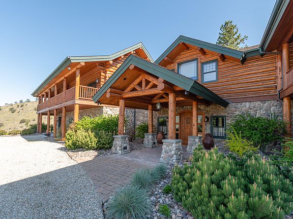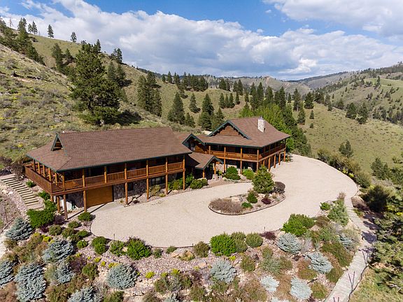 Exquisite 6,000+ Sq. Ft. handcrafted log home perched above the Bitterroot Valley with sweeping views. This 3 bedroom, 3 full and 2 half bathroom home features rustic Montana style finishes including exposed log beams, rough sawn hardwood floors, floor to ceiling stone fireplace, hand peeled log staircase, and custom light fixtures and finishes throughout. Enjoy the one of a kind views from the large great room featuring vaulted ceilings, custom bar and access to the oversize, wrap around/covered deck. The large gourmet kitchen with high end appliances opens to the spacious dining room through custom etched glass doors. The large master suite features deck access and spacious bath with custom tile and rich interior. The home features a carefully curated collection of western art, antique & commissioned hand-crafted furnishings which are also available. There is plenty of room for storage throughout the home including the attached, 4 car garage, huge mud room and in the oversized barn/shop. Situated on 129+ private acres and protected by the security gate this property is surrounded by State and US Forest Service land and offers views reaching from Trapper Peak in the Bitterroot Mountain Range through the valley and the Sapphire Mountain Range. Outdoor recreation is abundant with the Bitterroot River located nearby, ample hunting and Lost Trail Ski Area just down the highway. Located in the Bitterroot Valley, easily accessible year round and just 70 miles from Missoula, area economic hub. 2019-09-25