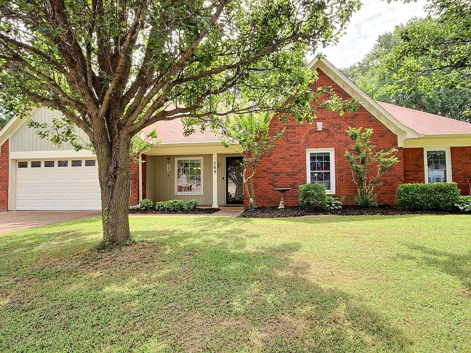 Just in time to start school! Wonderful one-story 3 BR/2BA family home! Updated Kitchen w/granite, ss appl, & awesome tile backsplash. Large Great Rm w/ vaulted ceiling & wood burning fplce. Primary Bath w/ double sinks & his/her walk-in closets. Huge Laundry/Mud Room. Walk to Neighborhood Pool & Playground. Large fenced backyard w/ nice trees & patio--great for entertaining. All New Windows, Gutters, and Carpet. One Year Home Warranty Provided. Collierville Schools!