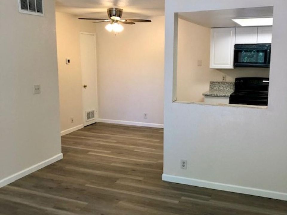 Investor alert! Motivated Seller! Tenant lease through 6-30-2024 at $1325 per month. May consider releasing. Updated, clean, corner unit (1 bed/1bath) condo in Wood Chase Community. This charming condo was remodeled in 2021 with neutral paint, granite countertops, white cabinets, black appliances, and laminate flooring throughout (no carpet). A brick fireplace for cold nights, new bathroom vanity with granite counter, and new light fixtures. The refrigerator, full-size washer, and dryer are included., Storage on the deck with afternoon shade and views of the greenbelt. A new water permitted was installed 11/2023. A seasonal pool and rec. room are on site. Close to Meadowood Mall, bus lines, stores, shopping. Assigned carport parking space. Perfect for the first time home buyer or investor. 24 hour notice to show per tenant's rights.