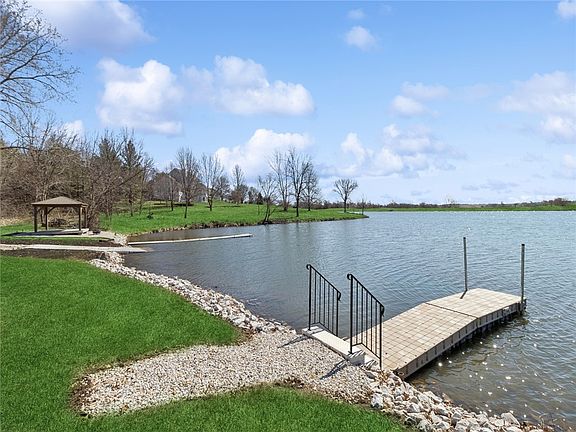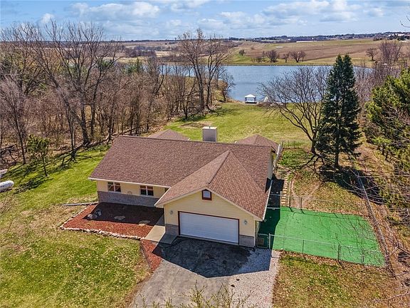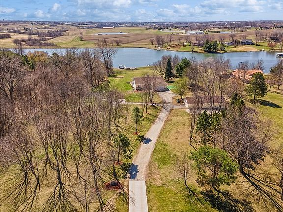 Walk-out ranch on a 3.69 acre private lot that backs to a very large 22 acre private lake and a 1,144 SF (22’ x 52’) 4+ car outbuilding. The home has 6 BRs, (3 BRs up and 3 BRs down), 3 baths and finished walk-out basement. This property has 2 private docks and a private concrete boat ramp. The fishing is fantastic (see fish photos inside property) and the other neighbors aren’t fisherman. Seller has retired to Florida. This is a great opportunity to own a close-in acreage just 1 mile to the interstate,14 minutes to Jordan Creek Mall and 9 minutes to Fairway grocery store in Norwalk. It is on a paved road. There are no homeowner dues. Lake is owned and shared by 12 surrounding homes owners.