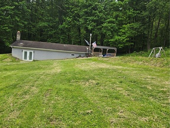 Tucked away in a wooded hollow, this unique concrete home offers rare seclusion and endless potential. Surrounded by trees with a single private drive, the home rests in a natural bowl-like setting—peaceful and protected. Recently gutted after a fire, it now features all new framing and a blank slate interior. Much of the electric is in place, plumbing can be easily added, and the 4-year-old HVAC system includes central A/C. While currently framed for 2 beds, 1 bath, a kitchen, dining, and living area, the layout is flexible and can be reconfigured to suit your needs. A former outbuilding site with existing electric offers space for a future garage or barn. A newly built covered pavilion adds charm to the outdoor space. With vision and creativity, this could become your secluded woodland retreat.