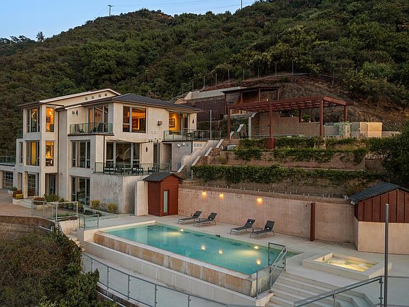 Experience the pinnacle of modern luxury with this stunning contemporary estate, seamlessly blending architectural brilliance and serene privacy. The expansive open floor plan is bathed in natural light, with floor-to-ceiling glass doors connecting indoor and outdoor living spaces. The gourmet kitchen features top-of-the-line appliances, custom cabinetry, and a striking island, flowing effortlessly into the elegant living and dining areas. The primary suite is a tranquil retreat with a private sitting area, spa-inspired bathroom, and views of lush greenery. Additional en-suite bedrooms, a state-of-the-art media room, and a luxurious sauna offer unmatched comfort and convenience. A fully-equipped home office and custom smart home technology enhance functionality throughout. The outdoor spaces are a true entertainer's dream, featuring a sparkling pool, spa, outdoor kitchen, and multiple lounge areas surrounded by impeccable landscaping. A covered patio and private terraces provide the perfect spots to unwind and enjoy the serene ambiance. With a gated entry, three-car garage, and unparalleled attention to detail, this home offers privacy, style, and modern sophistication, all within moments of local amenities. Don't miss the opportunity to make this one-of-a-kind retreat your own.