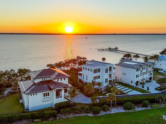 Welcome to Paradise, Waterfront Luxury at Its Finest! Discover the pinnacle of waterfront living in this stunning 2021 custom-built estate, nestled within the exclusive gated enclave of Pelican Pointe. Offering 4 bedrooms and 5 bathrooms, this 3,800+ sq. ft. masterpiece seamlessly blends elegance, comfort, and modern sophistication. Step inside to soaring coffered ceilings, exquisite hardwood flooring, and an expansive open-concept design that exudes warmth and grandeur. Every detail has been meticulously curated, from the impact windows to the custom light fixtures. The gourmet kitchen is a chef's dream, boasting granite countertops, high-end stainless steel appliances, and an ocean view hidden massive pantry to create a unique blend for effortless entertaining. Indulge in your private outdoor sanctuary, complete with a second story custom heated saltwater pool to the view with a personal beach along the Intracoastal Waterway, and a designated boat slip, perfect for boating enthusiasts. A spacious three-car garage ensures ample storage for vehicles and gear that opens up to a spacious veranda and a lush yard just shy of half an acre. A rare find on the Treasure Coast. This is more than a home, it's a lifestyle. Don't miss the rare opportunity to own this waterfront masterpiece. With the intracoastal just steps from your back yard and the Atlantic Ocean directly across the street. You have the best of both worlds at your fingertips! Schedule your private tour today and experience unparalleled Florida Lifestyle living at its finest.