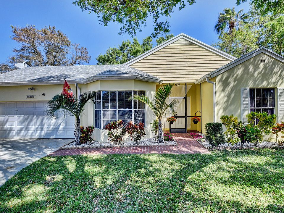 Amazing Lakefront home! This home has it all-Designer type kitchen with Grey quartz/ white cabinets and stainless appliances. This beautiful 2/2, plus bonus 3 bedroom and sunroom is an absolute find. NEW ROOF, AC 2020, Popcorn free ceilings and like new washer & dryer. Full 2 car garage, private yard with potential for a pool. This gated community is in a great location- minutes from shopping, restaurants, schools, parks, major highways and beaches.