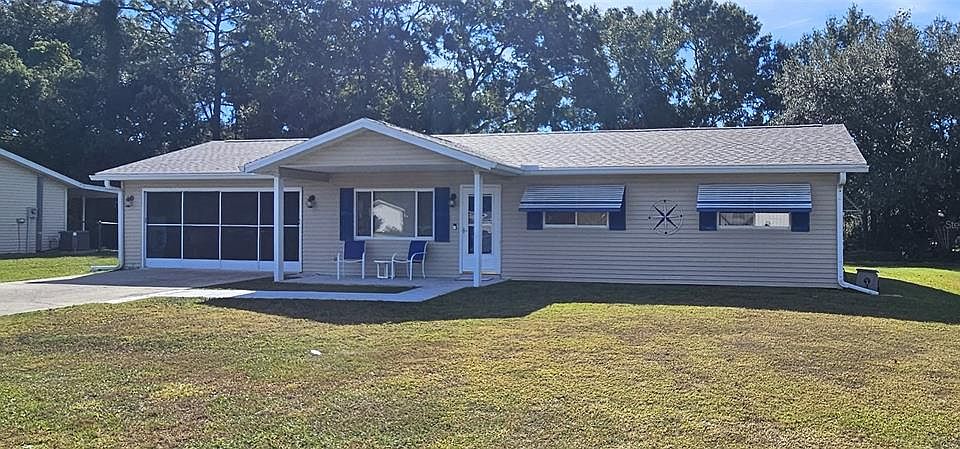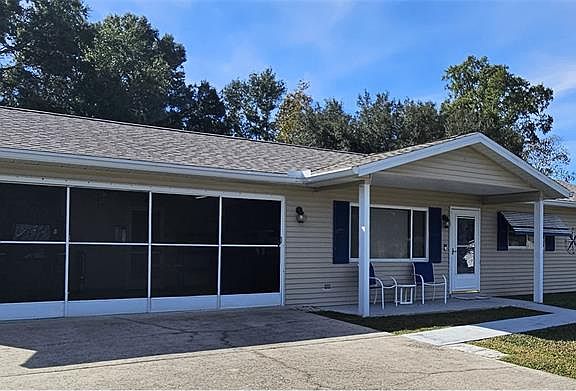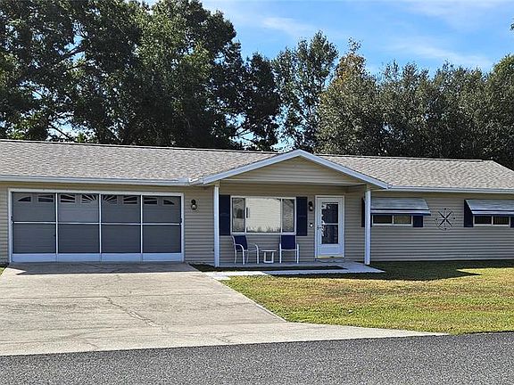 This well maintained 2 bedroom, 2 bathroom, 2 car garage home has a NEW ROOF 2025, AC 2011, new water heater and is situated in a secure, 24-hour gated community, designed for residents aged 55 and older. It has a Florida room and huge 28' x 11' lanai, an inside laundry room with washer and dryer included. The affordable management fee includes trash removal, 24-hour guarded gate, a clubhouse where there are planned social events, a library, billiards room, a card room, an arts and crafts room, a community pool, modest gym, and a tennis court. Situated in Southwest Ocala, the property is just a short distance from shopping centers, restaurants, the World Equestrian Center, VA hospitals, and other healthcare facilities. Golf carts are permitted, and RV or boat storage may be available for a reasonable monthly fee. The property is conveniently located minutes from I-75, one hour from Gainesville, and one and a half hours from Disney.