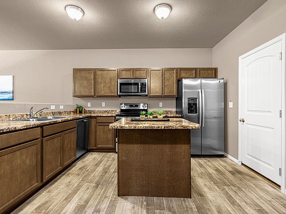 The spacious living room features soaring ceilings and a sun-filled window overlooking the lush lawn. The open-concept kitchen includes a center island, pantry, and a dining area that flows seamlessly for everyday living and entertaining. Direct access to the attached garage makes bringing in groceries quick and easy.