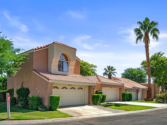 Welcome to your private retreat in the heart of Oasis Country Club. This two-story residence offers two spacious bedrooms, two and a half bathrooms, and a thoughtfully designed floor plan that blends comfort with convenience. Upstairs, you'll find two generously sized bedroom suites, each with its own private bath. The bathrooms have been completely remodeled with modern finishes, while the bedrooms remain in their original style--bright, comfortable, and ready for your personal touch. The primary suite also includes an upgraded walk-in closet with custom storage solutions, and the upstairs landing features built-in cabinetry for added functionality.On the main level, a guest powder room provides ease of entertaining without needing to access the upstairs quarters. The home also offers direct access from the attached garage, where upgrades include finished drywall, a new garage door, and a new motor.Additional updates throughout the home bring peace of mind and modern comfort:All-new carpet and interior paintNew lighting fixtures and updated lighting upstairs. New HVAC system installed in October 2023.Step outside to the private back patio, surrounded by mature hedges, creating a tranquil setting for outdoor dining or relaxation. Just beyond your door, one of Oasis Country Club's 18 pools and spas is only steps away, making it easy to enjoy resort-style amenities every day.This desirable corner cul-de-sac location also offers easy walking access to the clubhouse and fairways. Beyond the residence, Oasis Country Club features an 18-hole executive golf course designed for a quick, enjoyable round, as well as pickleball, tennis, a dog park, and countless social activities that make the community both lively and welcoming.Whether you are seeking a year-round home or a refined desert getaway, this property offers the perfect balance of privacy, convenience, and community--all within a beautifully maintained, amenity-rich setting.