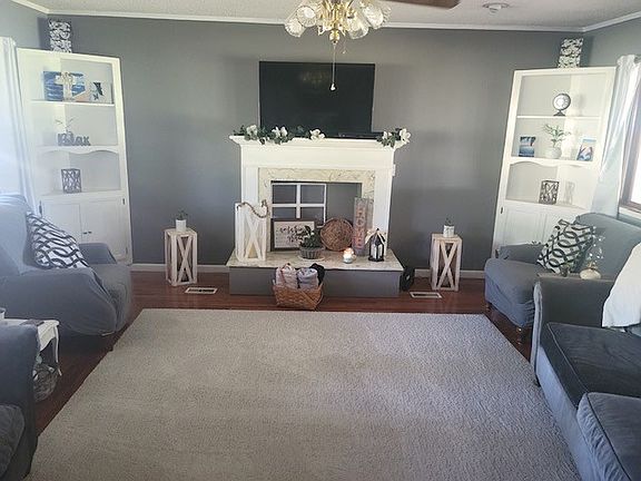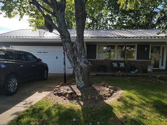 This 2 bedroom/ 2 bath home is conveniently located close to local restaurants and shopping. The circle drive leads to a welcoming front porch. This house offers several updates. Living area and potential office/breakfast nook have a view to a spacious fenced in back yard. A covered patio offers room for outdoor activities and gatherings. Master suite has two closets and private bath. Attached two car garage. Basement and crawl space have been treated to prevent mold and has pump to prevent flooding. Has plumbing for another bathroom and has washer/dryer hookup to have laundry room in basement. Potential for added living space. House also has Laundry chute. New metal roof also . Motivated seller.
