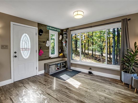 Tucked away this modern A-frame home offers a great blend of style, privacy, and natural beauty all within the Orchard Park school district. Sitting on almost 3 acres, it’s the kind of home that feels like a getaway, every day. Step inside to find vaulted ceiling, wall of windows and a cozy woodstove at the heart of the open-concept living room. The perfectly updated kitchen features a quartz breakfast bar and a custom made beverage station perfect for early morning coffee or entertaining for the Bill's game. The bathroom is newly updated while the airy loft(bedroom) adds bonus space with a view. Outside is a large deck overlooking your own private yard and woods. Whether you're a nature lover, weekend escape-seeker, or someone who just wants a home that is so cool, this one’s worth a look. Welcome Home!! Showings begin Saturday Oct 11th offers reviewed Monday October 20th.