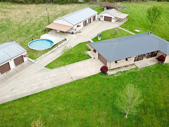 This brick ranch home on 5 acres has 3 buildings. Great property for a home based business or a car collector. This home has a large family room on the main floor along with 3 spacious bedrooms and a large sun room for summer entertaining. The basement has another large family area with a bar, guest bedroom, and a large laundry room. The home has 200 amp. electric service and, an outdoor wood furnace to reduce the heat cost. The outdoor furnace also heats the 28x65 building that also has its own 200 amp. electric service. The other two buildings are 24x24 with a carport and a 28x48. The concrete driveway keeps the dust and dirt out of the garages and home. Although nothing worked correctly when we purchased the home, we have done about $7,000.00 worth of repairs. We are building onto our living room and dining room in the spring of 2022