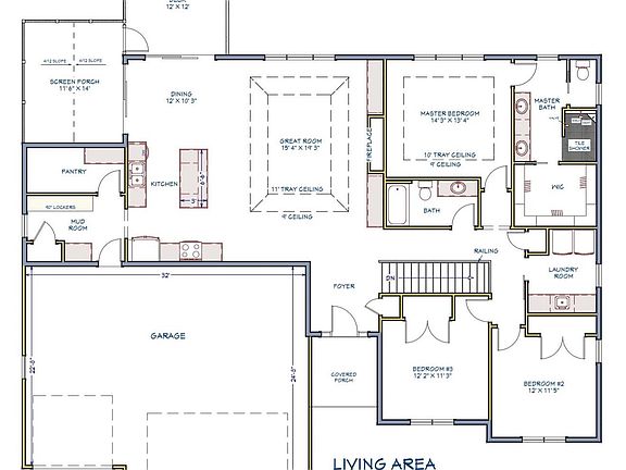 Amish-built custom cabinetsSolid surface countertopsBright inviting livingScreened porchButcher block top