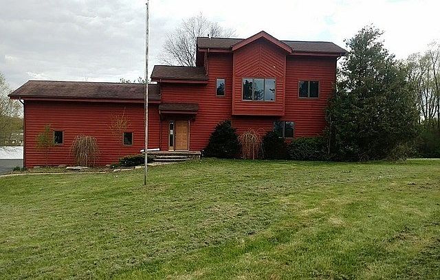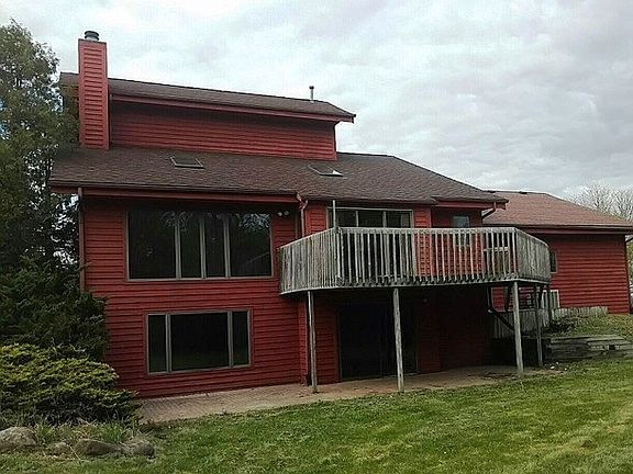 One-of-a kind home on a .77-acre lot on nice cul-de-sac. Three levels of living space! The main floor offers a spacious great-room with fireplace, and slate-tiled kitchen with skylight and eating area with sliders to the deck overlooking the big back yard. The upstairs offers two bedrooms and a full bath. The fully exposed lower level has a large rec room with vaulted ceiling and second fireplace, bonus room, third full bath, and sliders to the patio in the spacious back yard. Central air; 2-car attached garage. Equal Housing Opportunity