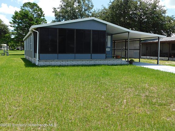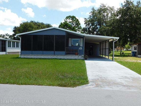 Brookridge on the Golf course. Has huge golf cart garage, covered carport, nice vinyl lanai on the front. New roof 2016 This one is move in ready, good bones, solid floors. One of the most desirable parks in Hernando county. With daily activities, club house, pool, pickle ball. Close to the Sun coast expressway & all the shopping and restaurants you could ask for! Be sure to check this one out