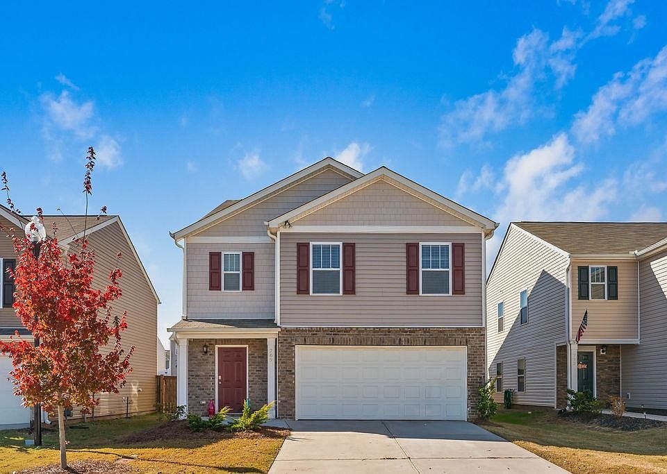 Only 3 years young, this 5-bed/3-bath home blends space and style in popular Lenhardt Grove. The open-concept main level centers around a crisp kitchen with a large island, granite counters, stainless appliances, and a true walk-in pantry—perfect for bulk storage. A main-floor guest bedroom with a full bath offers ideal flex for visitors or a quiet office. The great room features a gas-log fireplace and easy flow to the fenced backyard for play and pets. Upstairs, the private primary suite includes a spacious bath with a separate water closet and a generous walk-in closet. You’ll also find a loft for media/homework, the laundry room, a hall bath, and three additional bedrooms—room for everyone and everything. Lenhardt Grove residents enjoy a community pool, cabana, and sidewalks. All of this just minutes to Downtown Easley, shopping/dining, Prisma Health Baptist Easley Hospital, and quick connections along Hwy 123 toward Greenville or Clemson. Move-in ready comfort with modern conveniences in a location you’ll love. Key Features (quick bullets) Open concept living + gas-log fireplace Large kitchen island + walk-in pantry Main-level guest suite with full bath Upstairs loft + laundry up Fenced backyard Community pool, cabana & sidewalks