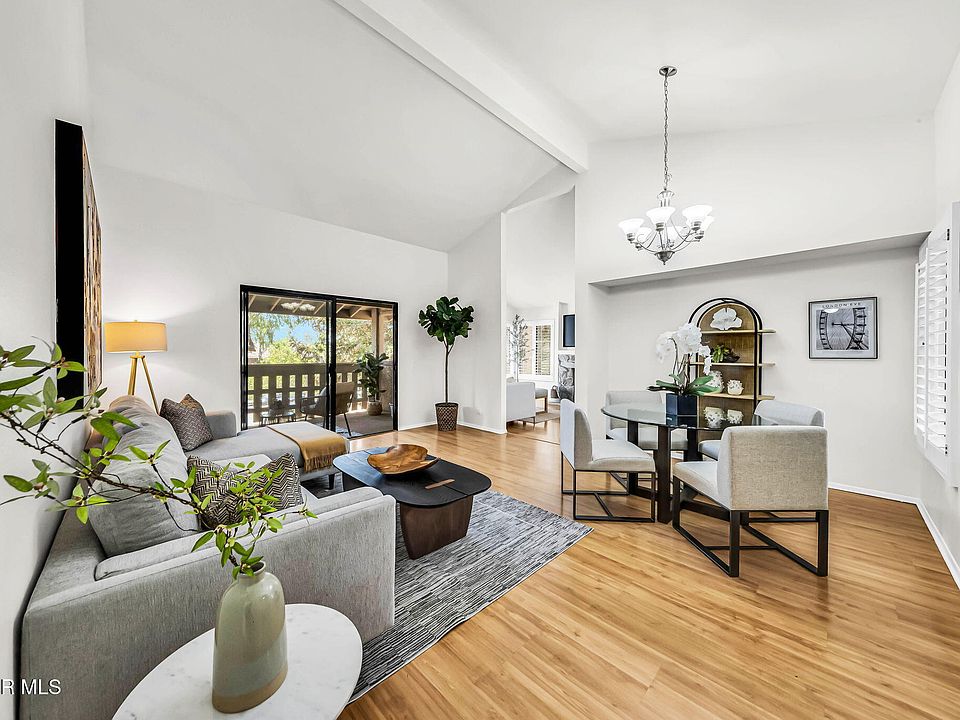 Seller Financing Available! If you've had your sights on Oaknoll Villas, the desirable 55+ community in Thousand Oaks, then you've got to see this stunning two bed, two bath, 1147 SF remodeled penthouse model that's the largest floor plan available. As you enter this bright and spacious home, located on the upper level, you'll immediately notice the vaulted ceilings, light-colored flooring, and the Zen feeling of this remarkable condo. This open floor plan has such a great flow, with the living room and dining room cojoined, then opens to the family room with fireplace, an abundance of windows with shutters, and an updated kitchen with quartz counters, additional seating at the bar, and new dishwasher, stove and microwave. For additional flow, the living room opens to a delightful balcony with tree-top views. Down the hall of this newly painted condo are the refreshed bathrooms with quartz counters, and two very spacious bedrooms with new carpeting. Another added benefit is the inclusion of the stackable washer & dryer in this move-in ready home. Oaknoll Villas has wonderful community amenities including pool, spa, clubhouse, gym, billiard room, card room, shuffleboard courts, yoga room, butterfly garden and dog park. The HOA includes trash, cable/internet, complimentary plumbing service, plenty of guest parking and landscape maintenance. This active senior community is centrally located and very close to nearby parks, Conejo Valley Botanical Garden, shops and restaurants, The Oaks Mall and the Hillcrest Center for the Arts.