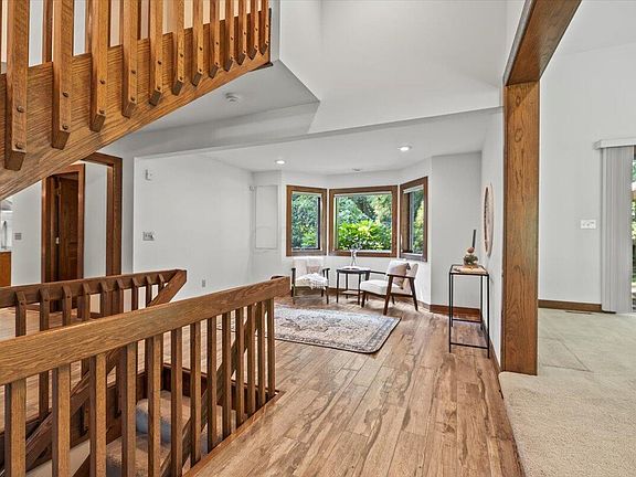 Custom Built Home on over a 1/2 acre lot, wooded park-like setting. One of homes most unique features- 4 plus car heated garage. Garage depth is 1 1/2 car length, 4 car width and 15' ceiling. Main level is designed to accommodate large gatherings without losing it's cozy intimacy. Enter the home to an open staircase, double coat closets, flex space overlooking beautiful garden. Great Room features vaulted ceiling, lots of natural light and a stone fireplace. Family room which was formerly used as a tv room can be used for a 4th bedroom. Kitchen is loaded w/storage space, large pantry, beautiful walnut cabinets, granite counters, double oven, KitchenAid appliances, large island. Primary Suite has a balcony, 4 walk in closets and huge bathroom. Attic space-potential for added bedrooms.